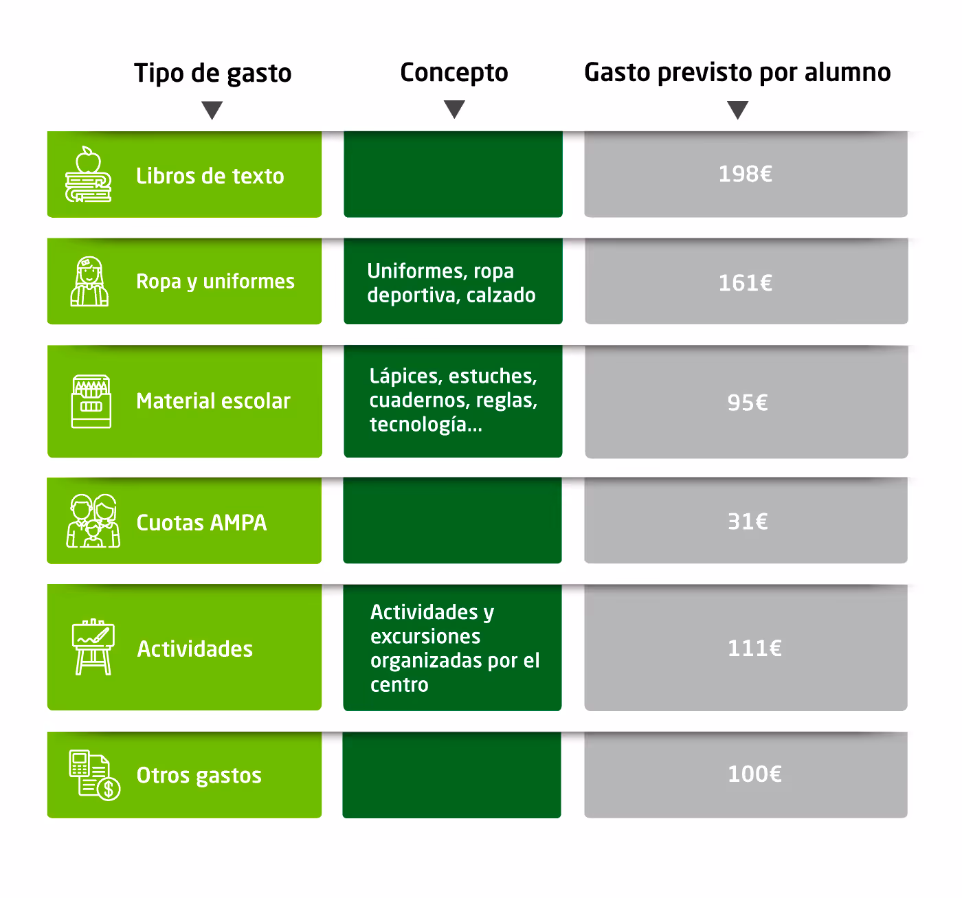 Y... ¿cómo se traduce esto a dinero? ¿Cuánto cuesta realmente volver al colegio? Las diferencias son sustanciales en función del tipo de colegio en el que se matricule el alumnado y su etapa escolar.